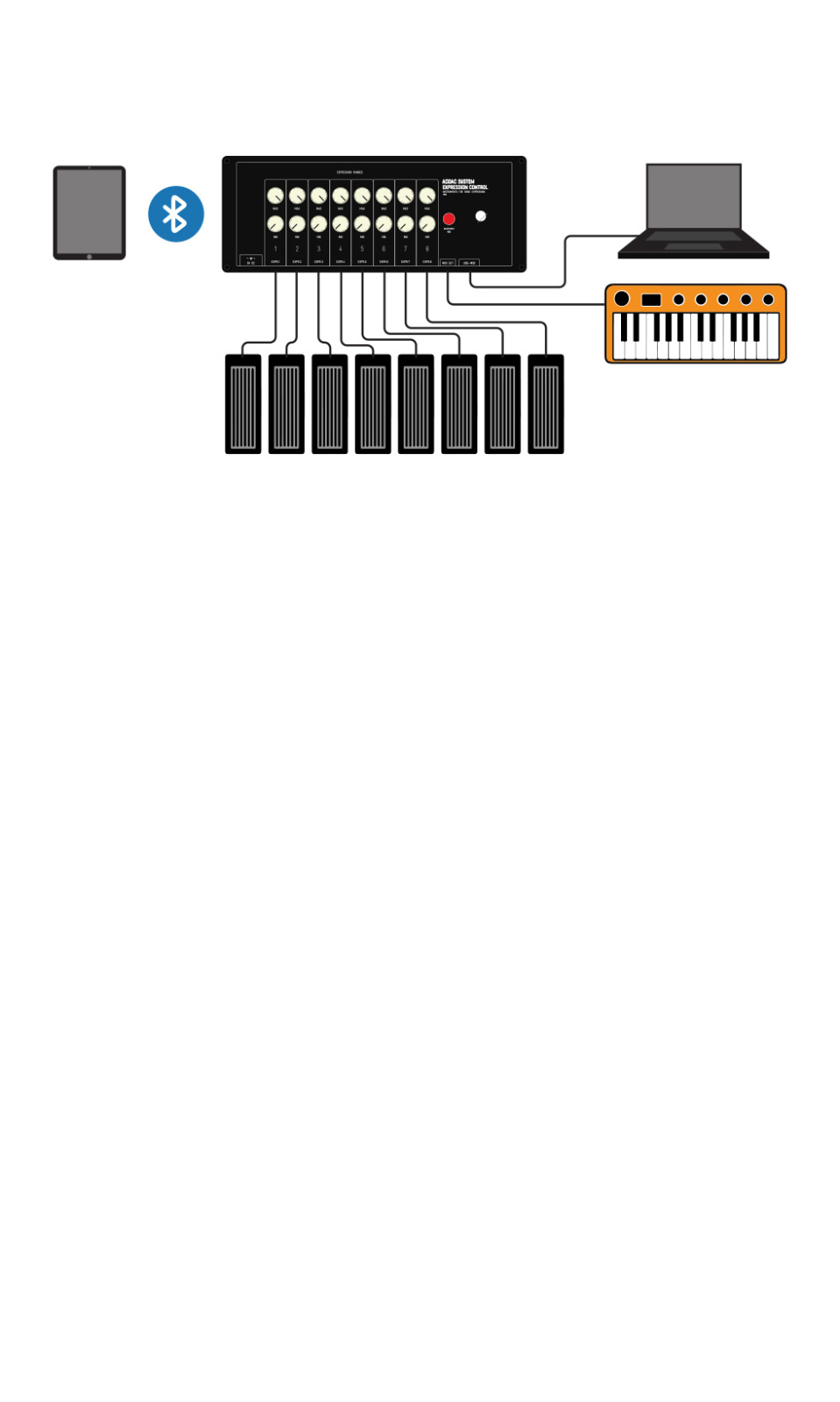 During the years we made several Eurorack modules making use of expression pedals. This time we bring a standalone plug n’play MIDI Controller for TRS Expression Pedals, it allows 8 expression pedals to be connected into it and outputs Control Change messages via either USB-C MIDI, Bluetooth MIDI or standard DIN5 3.5mm jack. Allowing it to be connected to any synth, computer, tablet or phone.